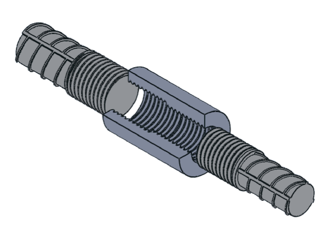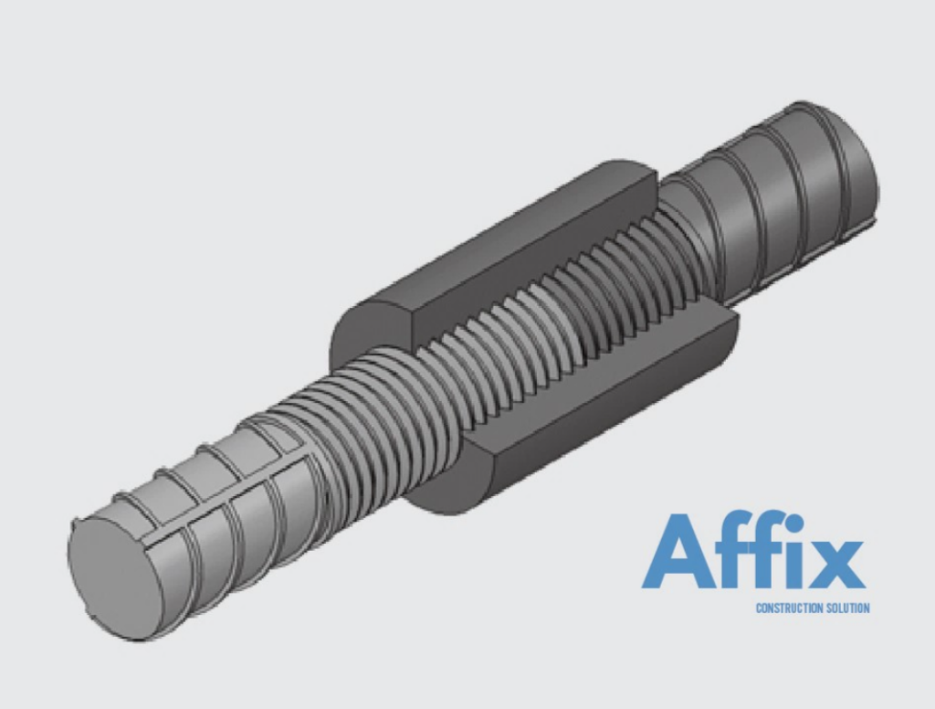 Consists of 1 standard thread with 1 extra long thread and 1 coupler head is used for splicing very long steel. This helps in the matter making it more convenient to splice steel that is embedded in concrete.