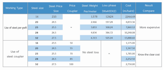 Papatpong Conmat Company Limited is a mechanical steel joint. The parallel spiral system is designed for connecting reinforced steel Ø12 to Ø40 mm.