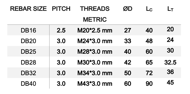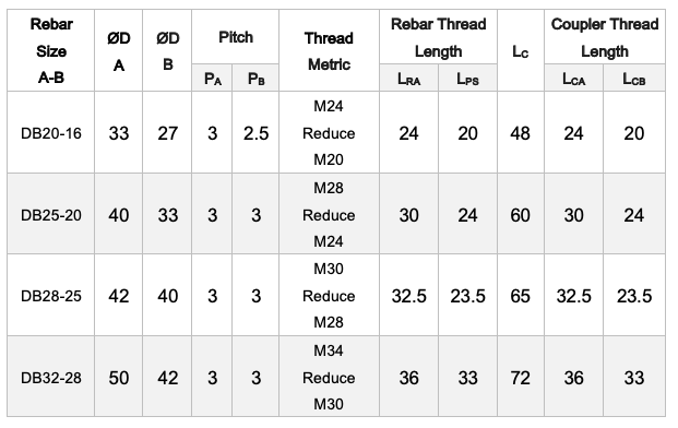 It is used for work that requires the extension of construction steel with different sizes such as downsizing DB32 to DB28, which helps simplify planning.
