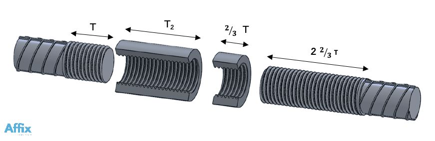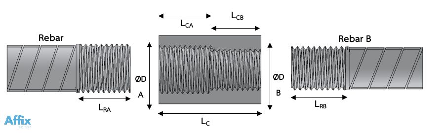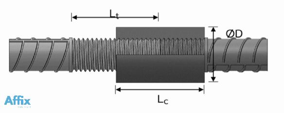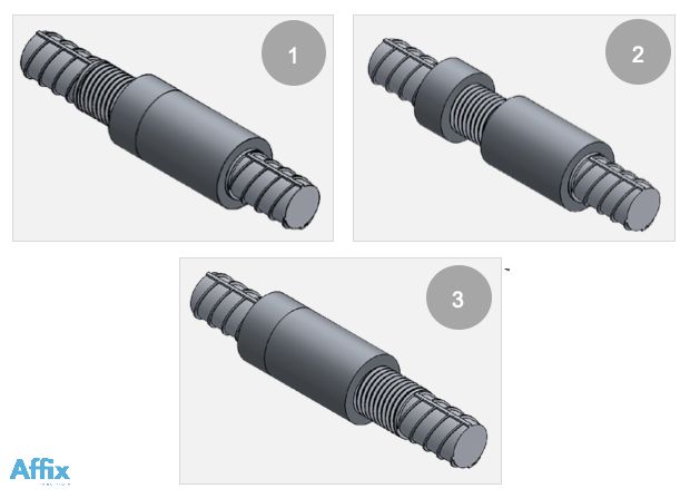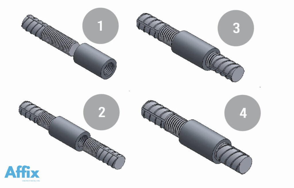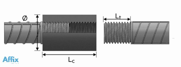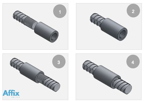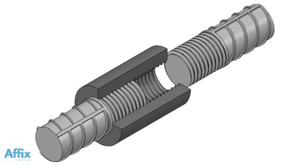 Consists of 1 standard thread with 1 extra long thread and 1 coupler head is used for splicing very long steel. This helps in the matter making it more convenient to splice steel that is embedded in concrete.